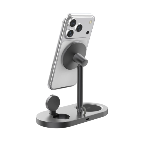 Experience ultra-fast 25W magnetic wireless charging with Quantum Ultra-Fast 3-in-1, the sleek desktop charger that powers your phone, Apple Watch/Samsung Watch, and earbuds simultaneously. Its efficient system delivers stable charging across all devices, supported by advanced safety and temperature protection for reliable everyday use. Made from RCS certified recycled ABS, recycled aluminium, and recycled PC. RCS (Recycled Claim Standard) verifies the recycled content throughout the supply chain. Total recycled content: 47% based on total item weight. The USB-C input ensures consistent energy delivery for optimal 25W output, and the item and accessories are PVC-free and packed in FSC® mix kraft packaging. Including a 120 cm USB-C to USB-C cable made from RCS-certified recycled TPE. Minimum input: 9V/3A for optimal use.